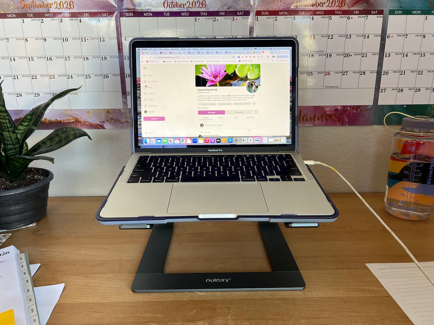 According to him, the bottom of your screen should be level with your chin when looking straight ahead. Oof! I’m not quite there yet, but, this new stand is definitely giving me more height.